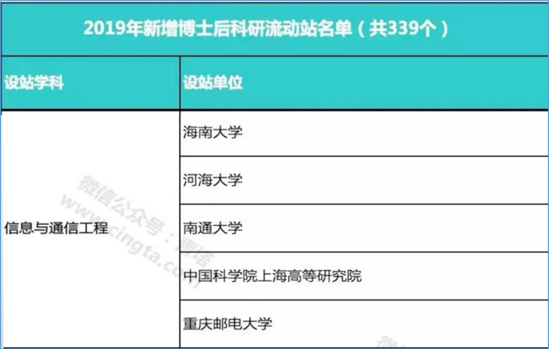 2019年新增博士后科研流动站名单