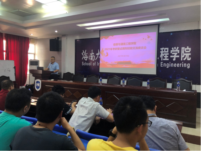 接下来,王咸鹏副院长和张永辉副院长分别介绍了复试面试常见问题,并就分数偏低的学生如何调剂,在复试过程中如何联系导师,调剂过程中需要注意的问题提出针对性建议。他们讲到,海南大学在创建世界一流学科建设背景下,人才培养的质量不断提高,学院的影响力也不断提升,我们信息学子要对自已充满信心,只要认真准备,放宽心态,我们都能应对各类挑战,获得最后的胜利。沈健老师也从自己带的2019届毕业生通过二战考上清华大学的真实案例鼓励大家积极准备复试,增强信心,希望大家能考取理想的学校。