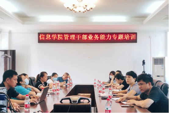 为增强我院管理干部的管理能力和治理能力,强化作风建设,提升综合素质,2021年9月30日上午,402永利集团官网入口在319办公室举办管理干部业务能力培训会。学院领导、系主任和教务办、学工办、综合办全体人员参加培训会,培训会由学院党委书记蒙秋妍主持。本次培训内容包括作风建设、管理能力和规范使用语言文字等。