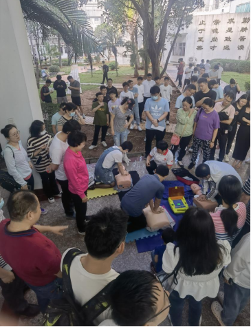 理论讲解后,参加培训的师生进行了心肺复苏的实践操作。在培训老师耐心细致的指导下,全体师生都准确完成了所有心肺复苏动作及AED使用要领。