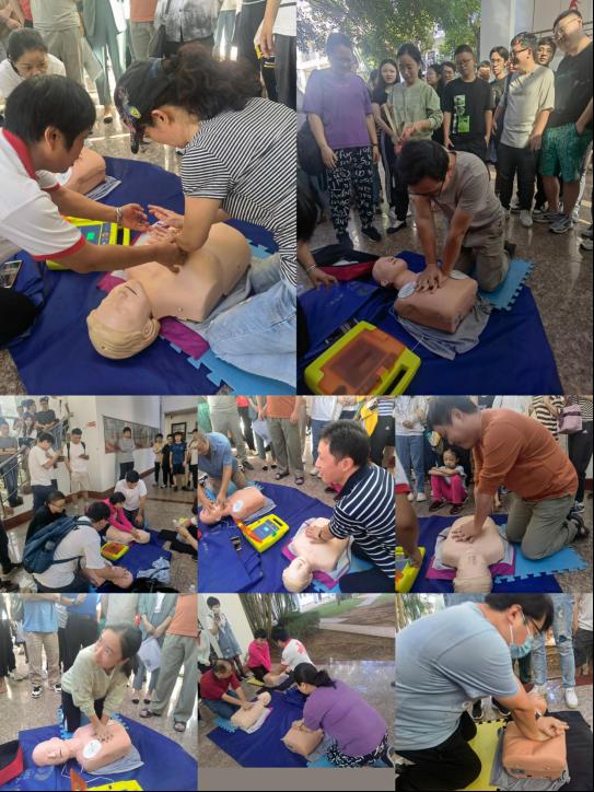 培训中,海南大学校医院副院长、副主任医师、海南省红十字会资深救护培训师朱萍老师现场为大家讲授了心肺复苏的原理、方法及AED自动除颤仪操作流程,强调了“黄金四分钟”的重要性,并通过使用人体模型将实践与理论结合,指导培训人员现场进行模拟急救操作。培训现场,大家认真听讲、用心记录,积极参与互动提问。