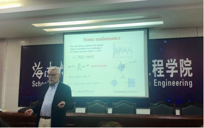 讲座伊始,Anders Lindquist教授结合自身近年来的研究成果和方向,以语音处理领域涉及到的一些数学表达式为切入点,分别分析了语音信号的一般模型、信号谱密度、经典Carathéodory扩展问题解等。