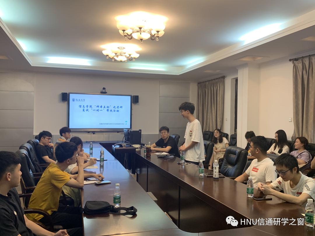 活动中,研究生会骨干和帮扶对象积极讨论复试中可能出现的各种情况,以及如何应对等问题,研究生积极分享复试经验,会上通过建立微信答疑群,以及线下“一对一帮扶”,即一名研究生帮扶一名考研复试学生,从能力和心态两方面,尽最大的努力给复试学生帮助和支持。