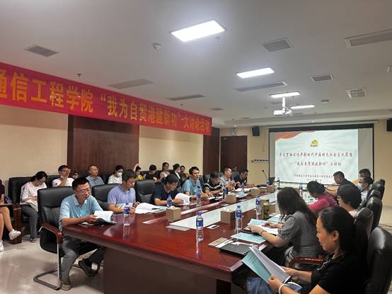 7月1日下午,全体参加活动的教职工在住地会议室召开了“我为自贸港建新功”大讨论活动,会议由黄国标书记主持。会上,李太君、张俊锋、胡祝华、束锋、任佳等五位教授分别就“深耕三尺讲台,做个真正的教授”“加强科研成果转化和科研育人”“科研聚焦海南自贸港建设和地方经济发展”“科研项目申报和科研成果培育”“加强科研团队建设和促进有组织科研”等方面做了专题发言。教授代表的发言生动精彩,参会老师们的反响热烈深刻,为持续推进主题教育,助力学院高质量发展,起到了进一步统一思想、凝聚共识作用。