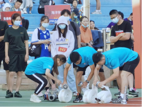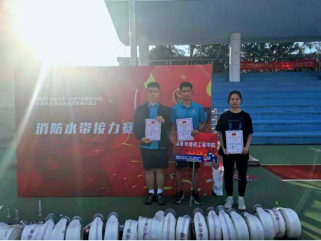 2021年11月9号下午,海口市119消防宣传月启动仪式暨海南大学消防运动会于在海南大学第一田径运动场正式开幕。此次运动会共设有消防水带接力赛、竞速运水灭火、着装灭火、水带收整极速大比拼、现场救援竞赛、携带水带折返跑等六个比赛项目,海南大学35个参赛队400余名参赛队员进行了激烈角逐。我院派出由学院工会委员王萍老师当领队的教职工代表队和学生代表队共10人参加了本次活动。经过激烈的角逐,我院代表队最终获得消防水袋接力赛第1名和团体总分第4名的好成绩。