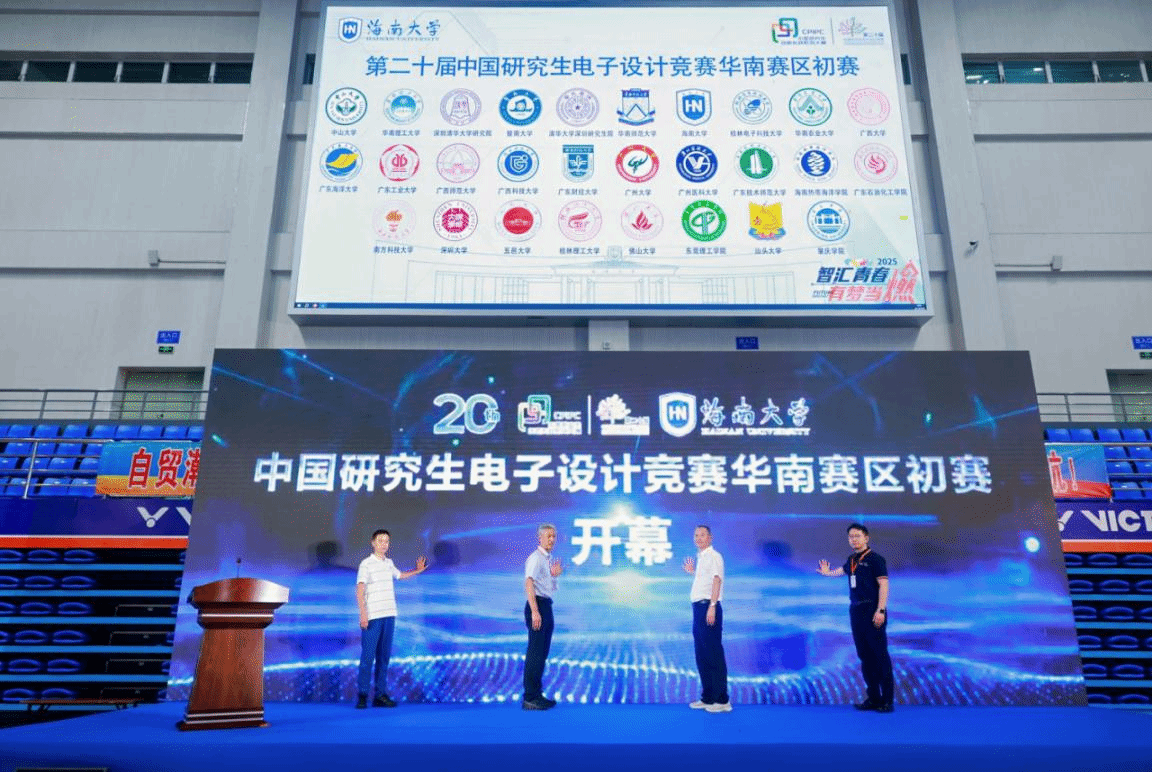 14日,参赛队伍进行了现场报到和作品布展、调试。15日上午,在海南大学海甸校区多功能体育馆举行了开幕仪式。402cc永利集团,402cc永利官网,402永利集团官网入口党委书记邓秀成首先介绍出席开幕式的领导和嘉宾。海南大学校党委常委、副校长李步洪围绕研究生教育、创新创业教育等方面介绍了学校近年来的发展情况。海南省教育厅二级巡视员张超指出,海南省正以“陆海空”三位一体创新布局抢占制高点,要积极响应国家战略,培养科技创新人才;要深化教育改革,加强实践环节;要以赛促学、以赛促教,深化产教协同,服务自贸港建设需求。中国研究生电子设计竞赛组委会秘书长李德识介绍了竞赛的发展历程以及赛程设置。李秘书长表示,本届研电赛吸引了全国8228支团队、3万余名师生报名参与,较上届参赛规模增长12%,再度刷新赛事历史纪录,已成为探索产教融合协同育人新模式、推动产业人才供给侧精准对接的重要平台。华南赛区评委代表殷瑞祥和参赛选手代表谢昆进行宣誓。与会领导嘉宾共同点亮屏幕,第二十届中国研究生电子设计竞赛华南赛区初赛现场评审正式开幕。